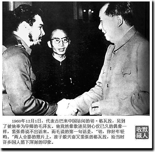 1960年11月,切·格瓦拉率领古巴革命政府经济代表团访问中国,他向中方提出的一个请求就是希望获得毛泽东主席接见。11月19日,毛泽东在中南海勤政殿会见了切·格瓦拉。格瓦拉见到毛泽东时紧张得说不出话来,毛泽东先开口对格瓦拉说:“切,你好年轻呦”,为交谈营造了一种轻松、幽默的气氛。