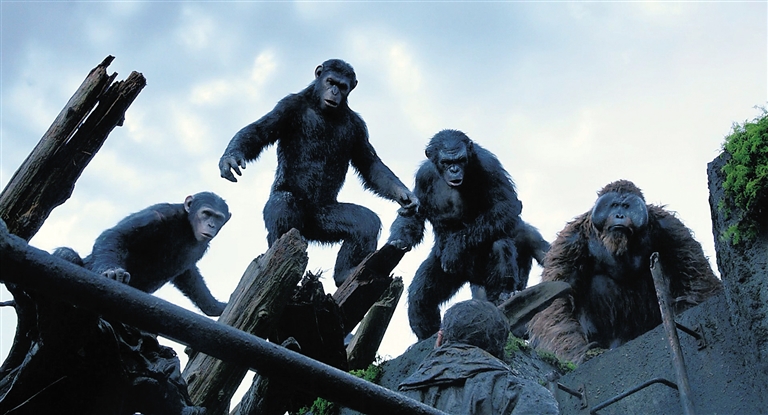 这部最新的《猩球崛起:黎明之战》,延续了2011年上映的《猩球崛起》的故事情节,讲述了一个名叫凯撒的猩猩,带领人猿军团与人类战斗的故事。凯撒在一次人类基因实验中意外获得人类的智慧和情感,但因曾受到人类的误伤和虐待而最终带领其他猿类走向人类的对立面。