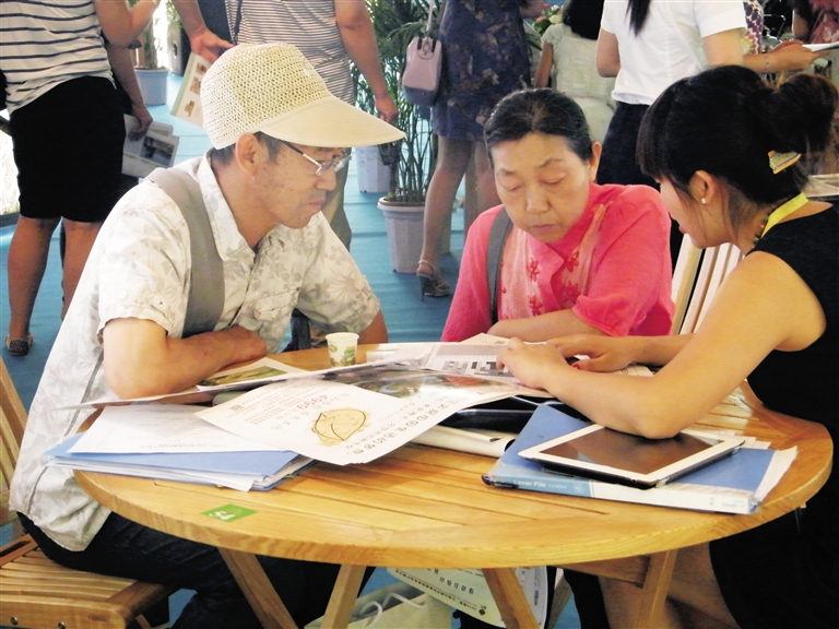 今年63岁的梁建新,来自新疆,目前跟儿子住在北京。7月12日,梁建新带着老伴在展示会上逛了一上午,他几乎把这次五指山来北京推介的所有楼盘资料都收集起来,回去认真比对,选择适合自己的房子。