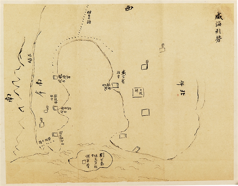这是《威海形势图》。图最下方的刘公岛是甲午战争北洋海军抵抗入侵日军的最后战场(资料照片)。 7月25日,中国第一历史档案馆将清宫所藏4500余件甲午战争档案全面整理公布,影印出版的《清宫甲午战争档案汇编》50巨册也即将面世。 新华社发