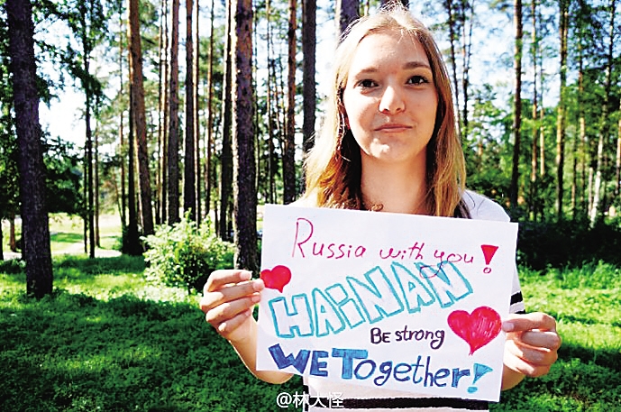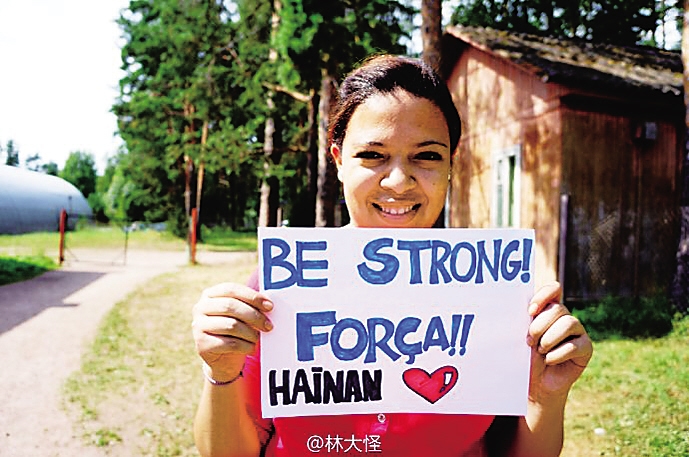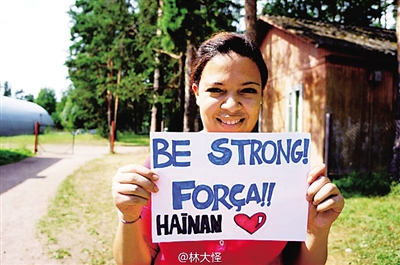 这样的微博和微信上贴了许多相片,每张相片上的外国人胸前举着一张大纸牌,或写或画,或用外语或用中文,内容均关乎“加油,海南”的祝福和鼓励。而他们年龄从几岁到二十几岁,背景所在地各不相同,但都不是中国。