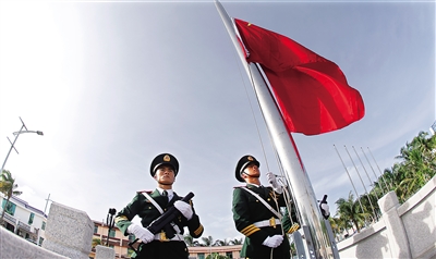 2013年5月9日,五星红旗在中国最南端的曾母暗沙升起,三沙人宣誓着主权,告诉世人,一个有力的政权已经坚强屹立在我们的“祖宗海”上。 (本报三沙永兴岛7月28日电)
