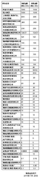海南省7·18超强台风赈灾义演晚会于7月24日在海口市举行。活动得到了社会各界的大力支持,截至2014年7月28日下午18时,已有善款4244.559万元确认到账,详细名单如下: