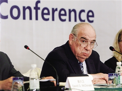 7月28日,美国福喜集团主席兼首席执行官谢尔登·拉文在发布会现场。 当日下午,上海福喜食品有限公司的母公司美国福喜集团在沪举行发布会,表示将在中国组建全新的管理团队,并针对现任以及前任高管人员可能存在的不尽职行为进行彻底的内部调查。 新华社发