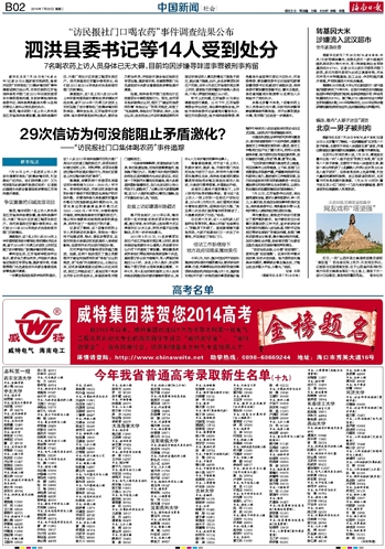| 海南日报 中国新闻社会 010 2014-07-291 2014年07月29日 星期二 |