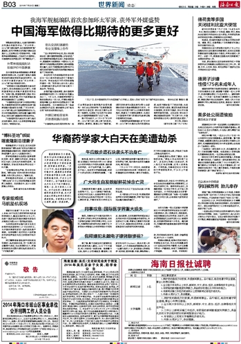 | 海南日报 世界新闻动态 011 2014-07-291 2014年07月29日 星期二 |