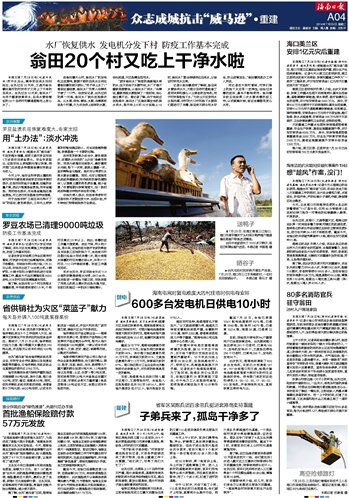 | 海南日报 众志成城抗击“威马逊”●重建 004 2014-07-291 2014年07月29日 星期二 |