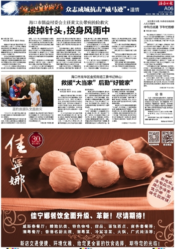| 海南日报 众志成城抗击“威马逊”●温情 006 2014-07-291 2014年07月29日 星期二 |