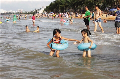 30日下午,游客在海口假日海滩游玩。“威马逊”台风过后,我省各界立即展开灾后重建,旅游景点已恢复营业。目前,海口假日海滩的游客量基本恢复到台风前的水平。本报记者 古月 摄