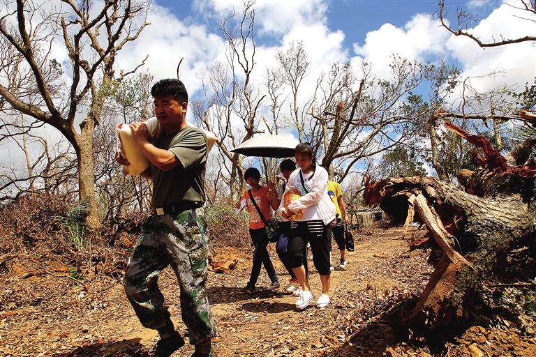 7月30日,海南鑫保罗投资有限公司的志愿者将村民们急需的大米、花生油等生活物资送到文昌市昌洒镇昌述村村民的家中。本报记者 陈元才 摄