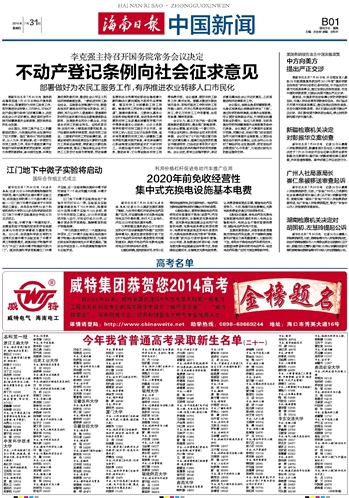 | 海南日报 中国新闻 009 2014-07-311 2014年07月31日 星期四 |