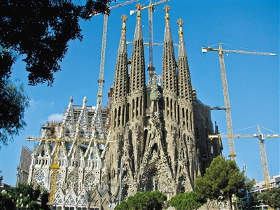 走进巴塞罗那,像是走进一座高迪建筑的博物馆。我好想大声问一句,高迪的房子们,你们还好吗?满心期望将第一站安排在历经六代建筑师之手,修建了一个多世纪,至今尚未建完工的圣家堂。当走出地铁那一刻,发现原来圣家堂就那么突兀的耸立在貌似居民区的街道中,没有宽阔的广场,似乎给人感觉不够气派。但是奇特的洞穴、山脉、花草、动物和玉米,让我目不暇接;螺旋、锥形、双曲线、抛物线各种变化的曲线造