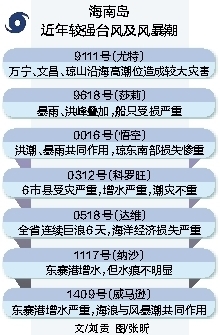海南省气象台研究中心统计,一年中光顾海南岛的台风(包括热带低压)平均7个。如此多发的台风走廊,风暴潮在海南岛灾难史上的地位不可小觑。