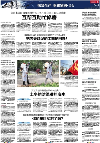 | 海南日报 恢复生产 重建家园·综合 004 2014-08-041 2014年08月04日 星期一 |