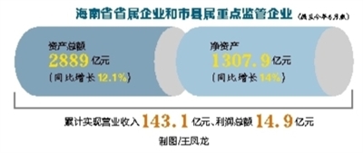 截至今年6月30日,海南省省属企业和市县属重点监管企业资产总额2889亿元,同比增长12.1%;负债总额1581亿元,同比增长10.6%;净资产1307.9亿元,同比增长14%。累计实现营业收入143.1亿元,同比增长5.3%;累计实现利润总额14.9亿元。