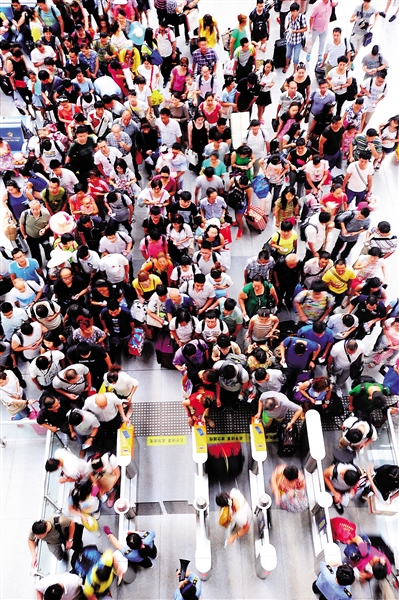 8月6日,旅客在沈阳北站检票上车。近日,沈阳铁路暑运迎来以学生流、旅游流、商务流为主的客流群体,管内各地出行客流持续走高,日均客流达到68.6万人。 新华社发