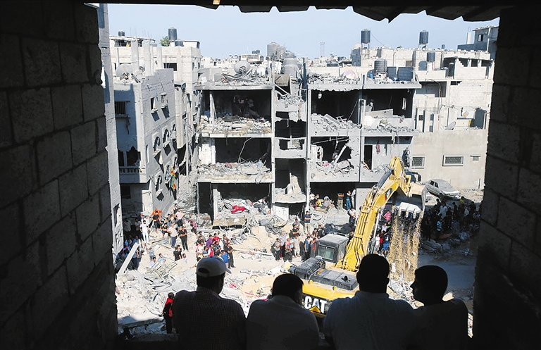 8月21日,在加沙地带南部的拉法,巴勒斯坦民众围观救援人员在废墟中寻找遇难者。 巴勒斯坦伊斯兰抵抗运动(哈马斯)武装派别“卡桑旅”21日证实,该组织3名高级领导人当天在以军空袭中丧生。 新华社/路透