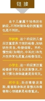 据介绍,体检中,可以通过拍胸片检查孩子的肺部、呼吸道疾病;通过B超发现先天异常和后天异常;通过脊柱拍片发现脊柱的发育情况。张雅琴强调,儿童期正处于生长发育的关键期,生化检查必不可少,可以通过检查确定微量元素是否缺乏。