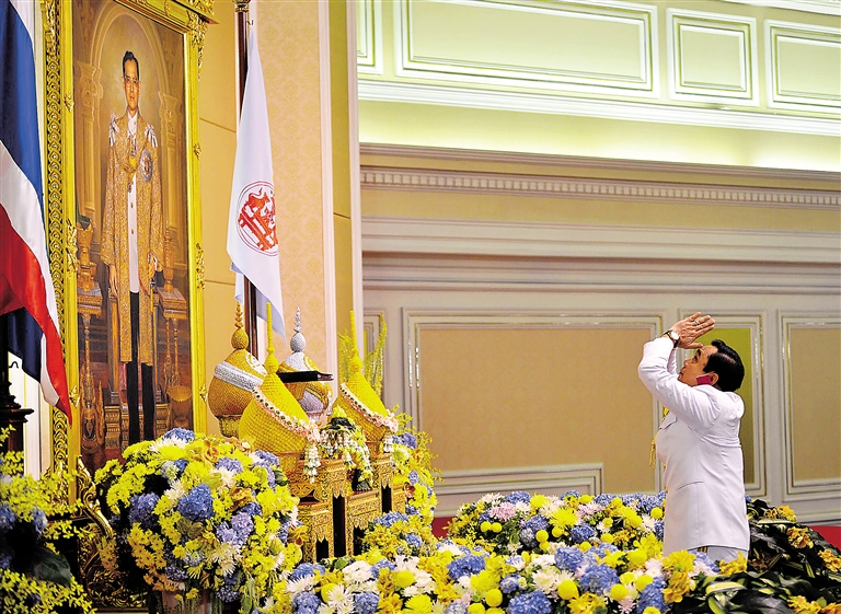 本月21日,泰国国家立法议会召开会议选举过渡政府总理,作为唯一候选人,巴育以191票同意、3票弃权的票数当选。按照泰国临时宪法,立法议会负责推举总理,国王批准后正式生效。