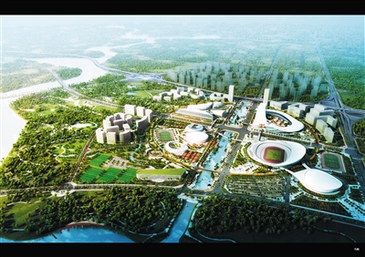 五源河文体中心及奥体公园位于海口市长流新区长滨路东侧,文体中心以满足全运会的赛事运营要求为标准,含“一场八馆”,包括4万观众坐席的体育场、1.2万观众坐席的体育馆、2000观众坐席的游泳馆等。