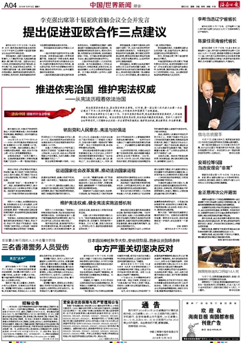 海南日报 中国/世界新闻综合 004 2014-10-181 2014年10月18日 星期六