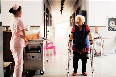 11月2日,在海南省托老院,88岁的江西老人卢枣阳正推着小轮椅锻炼身体。老人说这里每天都有电影看、还有文体活动,空气清新,又不冷,她在这里非常开心。据了解,新开张不到一年的海南省托老院环境优美,设施齐全,拥有床位618张,目前已有60多位老人入住,有不少是来海南过冬的候鸟老人。