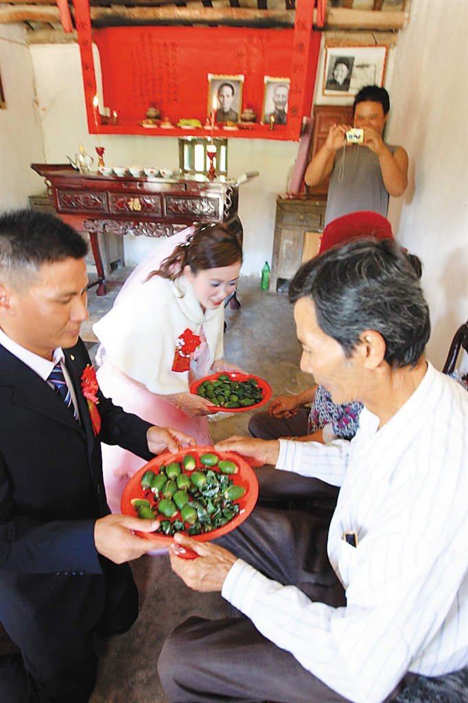 “放槟榔”习俗,有着深刻的文化意义。西晋时期,左思《吴都赋》就有“槟榔无柯”之赞。槟榔树干笔直,树身浑圆,“放槟榔”表示“一心一意”、“婚姻和美”。