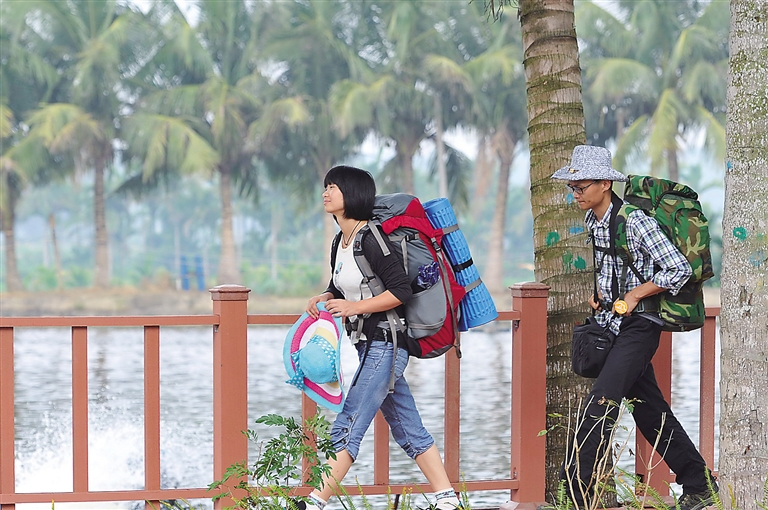 线路二:从海口市海甸岛白沙门公园门前出发,沿海边至海新大桥折返白沙门公园。行程8.5公里。海口市内线路,道路宽畅平缓,沿途有城市和海滩结合的景象,是十分适合市民的短途徒步路线。