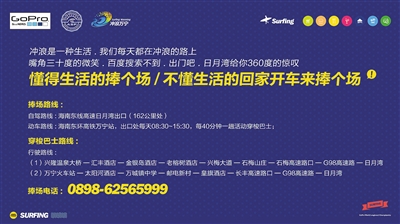 开通万城至日月湾、兴隆至日月湾两条冲浪嘉年华交通专线接送观众、游客。