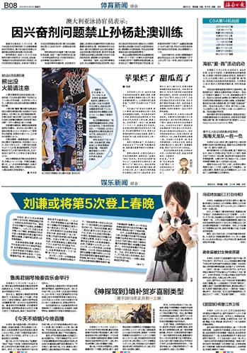 海南日报 体育新闻综合 016 2014-12-041 2014年12月04日 星期四