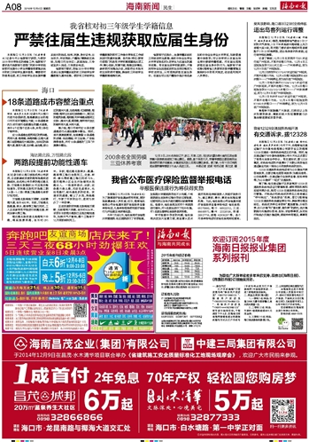 海南日报 海南新闻民生 008 2014-12-041 2014年12月04日 星期四