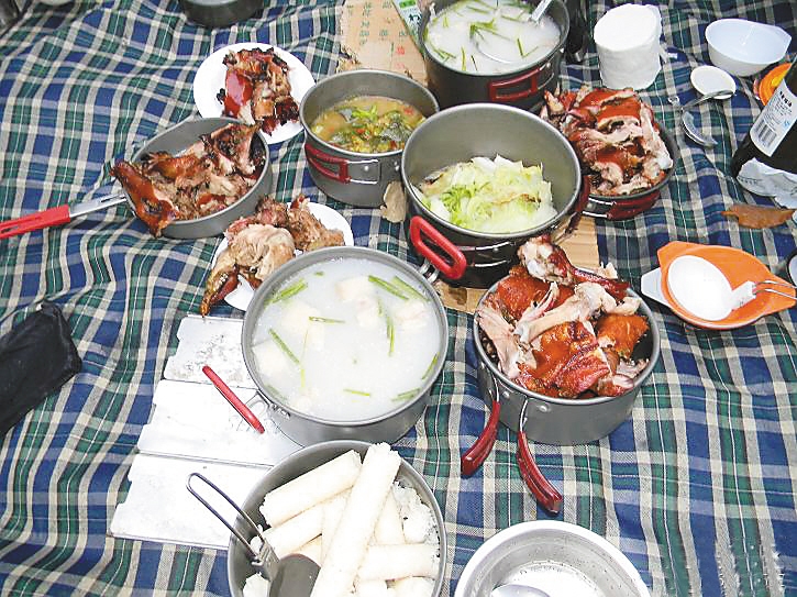 骚家出名却是“FB”,因为他们把野外生活发挥到了精致。巡航大哥光户外的锅就有三套。他们在山上炖椰子鸡汤,煲猪脚牛腩饭,吃四川麻辣火锅……让人吃惊这些大老爷们的情调,或许月光下,小溪边,与三五好友喝点小酒的生活实在是他们人生最痛快的享受。而负重上山的骚家的女侠们,活得更是奔放,甚至在山上秀起了旗袍。