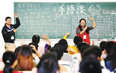 据介绍,当晚海南大学两个校区300多名各年级学生,同时利用业余时间学习手语,这一常规活动每周一次,已接力坚持了18年。海大爱心协会组织同学们利用所学的手语,在课余时间定期到儿童福利院、敬老院等与聋哑人交朋友,帮助残疾人解决一些生活、学习等困难,在社会实践中磨练自己。