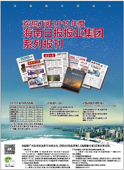 全国各地邮局均可订阅,邮局各营业窗口均可代收海口市城区由海南日报报业集团发行中心收订投递地址:海南省海口市金盘路30号 邮编:570216