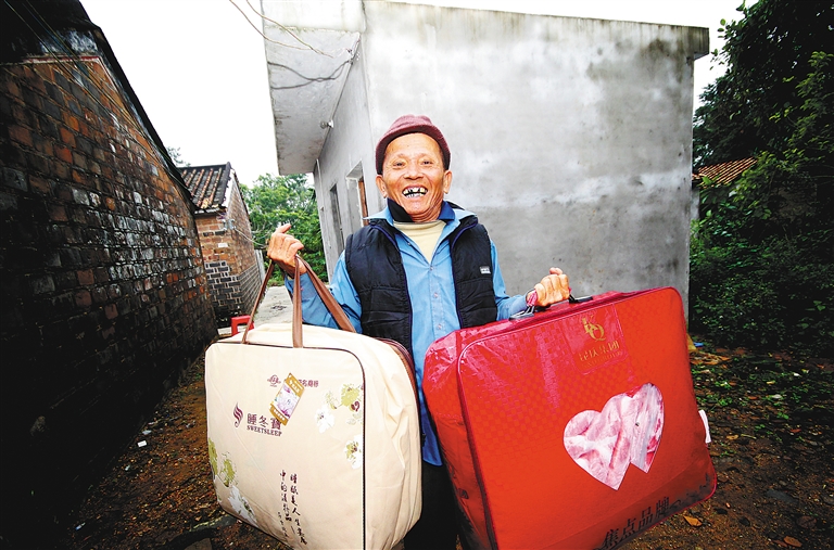 “原本还担心过冬物资不足,没想到这么快,棉被就发到村民手里了!”文昌市翁田镇内六村村民小组长王康生笑着说,上周降温,靠近海边的内六村冷风飕飕,“温度刚降,140床棉被就送到了村民手里,这个冬天不会冷了!”