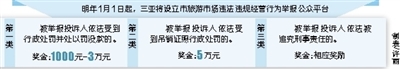根据《办法》,三亚将设立市旅游市场违法违规经营行为举报公众平台,即市长热线12345和市旅游投诉热线12301,由各职能部门依据举报线索进行调查处理,鼓励并重奖给三亚旅游市场找问题的公众。