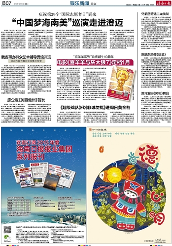 海南日报 娱乐新闻综合 019 2014-12-091 2014年12月09日 星期二