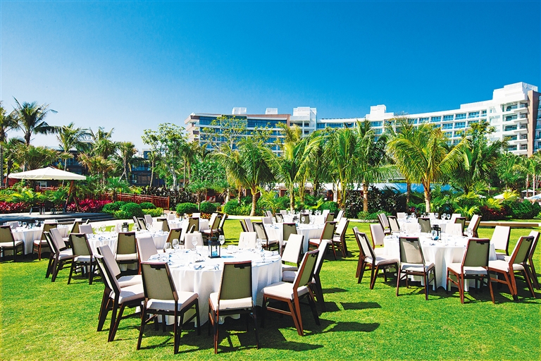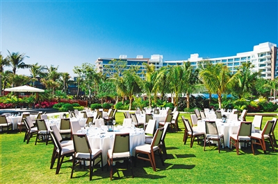 海棠湾喜来登酒店拥有总面积超过3600平方米会议场地,包括10间多功能会议室和面积达1500平方米且可分为三个同等大小区域的无柱式大宴会厅。8000平方米的青郁大草坪专门承接大型户外宴会。此外,酒店还设有宽敞的迎宾空间和户外空间——泳池和热带花园。想策划一次商务会议,酒店训练有素的餐饮和宴会团队将轻松搞定一切,包括选择合适的菜单、鲜花、装饰、照明、音乐及舞台搭建,都不成问题。