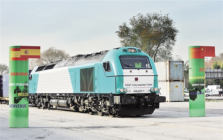 装载着82个标箱出口商品的首趟“义新欧”中欧班列于11月18日从中国义乌出发,经新疆阿拉山口口岸出境,途经哈萨克斯坦、俄罗斯、白俄罗斯、波兰、德国、法国,历时21天,最终抵达西班牙马德里。这条铁路线全长1.3万多公里,是目前所有中欧班列中最长的一条。其行程贯穿新丝绸之路经济带,为中国小商品出口欧洲开辟了一条全新的安全、高效、便捷的物流通道。