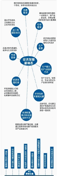 针对近一年来海内外始终关注的中国经济新常态,会议通过对“九大趋势性变化”的阐释,历史地、辩证地分析了我国经济发展的阶段性特征。