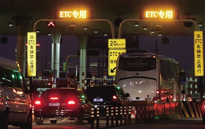 12月11日,车辆经过沪昆高速上海段新桥收费站的ETC通道。 按照交通运输部《全国高速公路电子不停车收费联网2014年度开通方案》进度安排,包括北京、天津、河北、山东、山西、上海、江苏、浙江、安徽、福建、江西、辽宁、陕西、湖南在内的14个省(市)高速公路ETC全国联网系统将在2014年12月21日完成切换及测试工作,正式启动试运行。2015年年底前,将基本实现全国所有省(区、市)高速公路ETC联网运行。