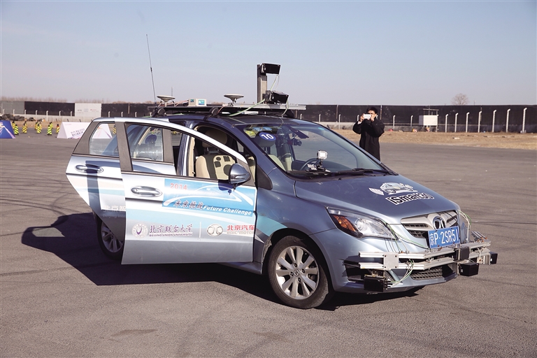 12月11日,观众在参观自动驾驶汽车。 当日,由北汽新能源汽车和北京联合大学合作研制的纯电动自动驾驶汽车在北京金港汽车公园亮相。该车可以按照预先设计的路线,自动行驶,行驶过程中可以选择避开拥堵路线,躲避行人,按照交通规则行驶。目前,该车仍然处于实验室研究阶段。