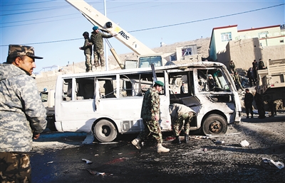 12月11日,阿富汗首都喀布尔发生一起针对军用大巴车的自杀爆炸袭击事件,造成6名阿富汗士兵身亡,另有10人受伤。新华社/美联