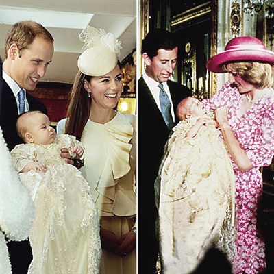 拿去年出生的乔治王子来说吧。按照传统,这名王室宝宝去年7月22日降生后,一名王室工作人员立即乘车从医院出发,将一份内容包括宝宝性别、体重和出生时间的公文送至女王官邸白金汉宫,装入一个镀金框架内,置于木制公告架上,摆放在白金汉宫前院,供人观看。同一镀金框曾经装过宣布乔治王子父亲威廉王子诞生的公文,因而更显纪念意义。