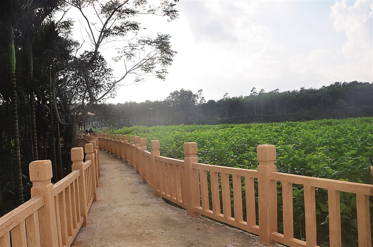 红白砖、鹅卵石铺成的小道,弯曲伸入风格别致的茅草凉亭;空地上绿草如茵,槟榔林立,椰影婆娑……“乡村的美景别有味道!”近日,琼中黎族苗族自治县红毛镇共建村的村广场上,海口的自驾游游客罗名明摁下了手中相机的快门。