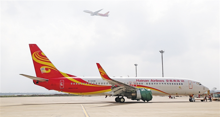 2014年12月9日,海口美兰国际机场一片繁忙,起降飞机一架接一架。据悉,随着冬春航季航班的到来,海口美兰国际机场进入客流高峰期,近期日均运输旅客量4万多人次。