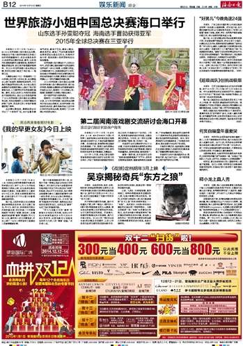 海南日报 娱乐新闻综合 024 2014-12-121 2014年12月12日 星期五