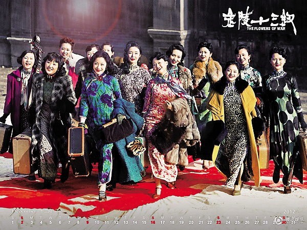 2011年张艺谋借用严歌苓的小说《金陵十三钗》改编了同名电影。一时间让“南京大屠杀”事件成为大街小巷的热门话题。他以中国老百姓最喜欢的故事讲述方式,从屠杀开始的第一天集中扼要地讲起;他以中国政府和中国人民最能够接受的方式,讲述了那一段惨烈的岁月中,中国的男人和女人如何以自己的方式来拯救他人、救赎自己。显然,他比陆川要乐观得多,他的镜头下的中国人更有骨气和血性。无论外界如何讽刺其为“情色爱国主义”,但《金陵十三钗》实际上恢复了我们在这段耻辱史中丢失已久的民族自尊心和自信心。也许性暴力的渲染,秦淮头牌玉墨摇曳的身姿,都带有强烈的猎艳、偷窥的身体消费性,但是跟随这种观赏性一起打包出售的,还有我们曾经非常熟悉的爱国情怀。在商业大片的热潮中,张艺谋寻求这样一种颇具眼球效益的商业包装,演奏出一曲秦淮绝唱。