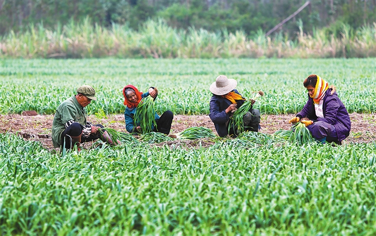 据介绍,去年该村种蒜面积300亩,种蒜高收益带动了今年全村种蒜。全村56户农民为种蒜成立了合作社,抱团发家致富。截至目前,该村种蒜面积已扩展到1000亩,年人均纯收入达6000元。本报记者 苏晓杰 通讯员 陈家良 符智博 摄