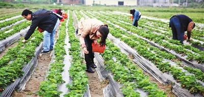 12月14日,海口天气晴好,不少市民利用周末时间前往郊区草莓种植园,摘草莓、品草莓、话草莓,开心体验农家乐。